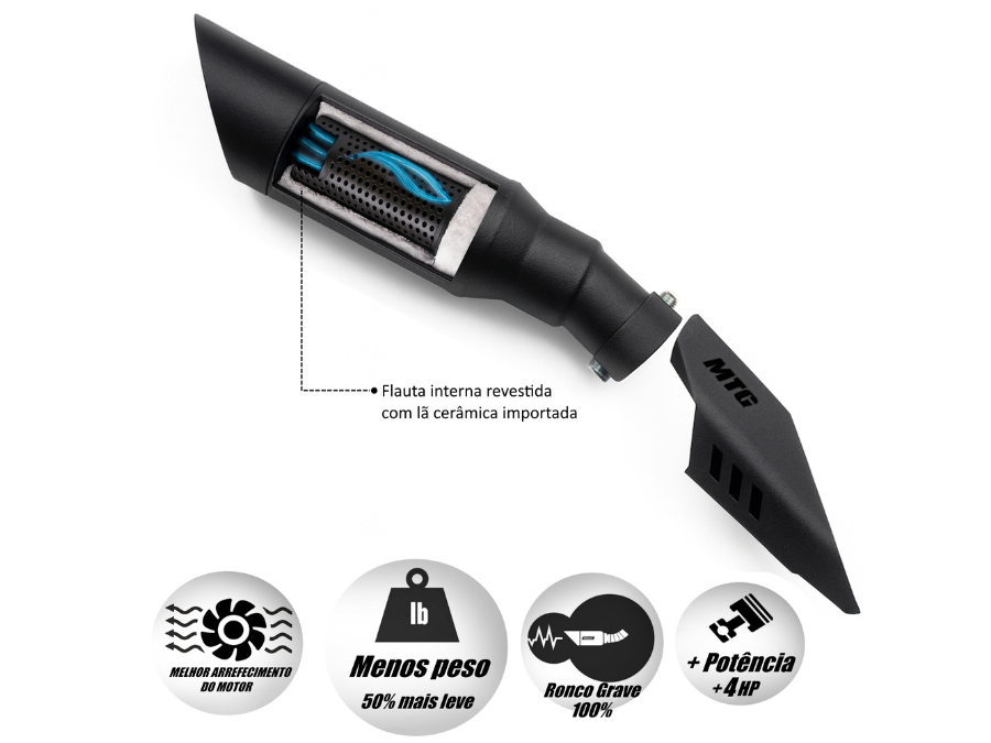 O escapamento MTG® possui característica de performance e qualidade de materiais com padrão