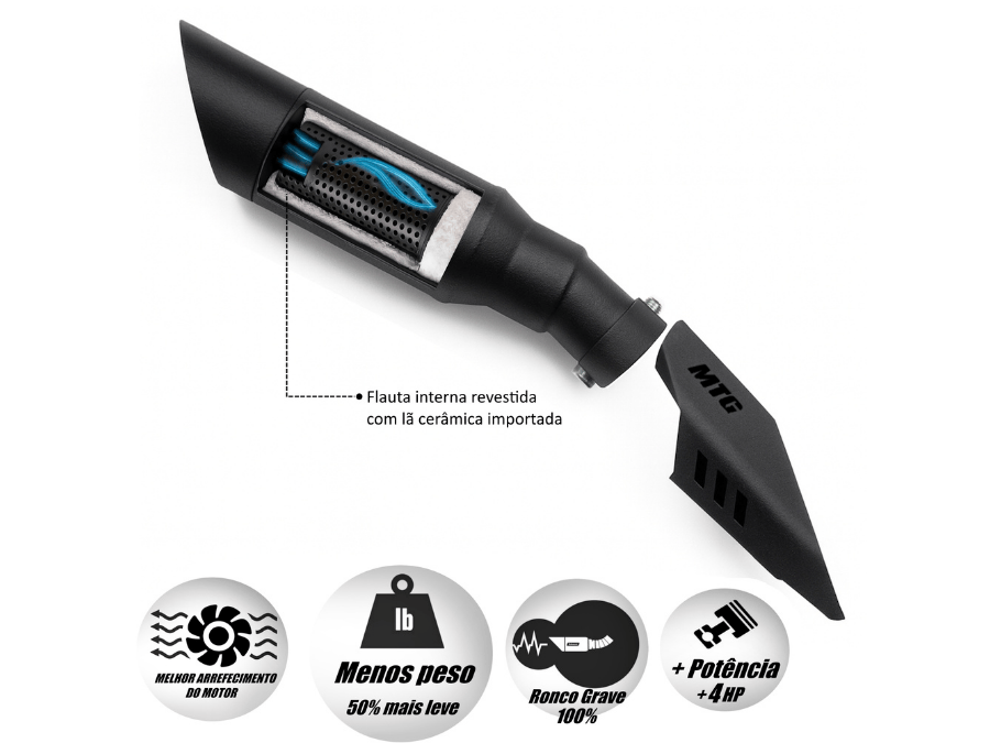 O escapamento MTG® possui característica de performance e qualidade de materiais com padrão internacional.